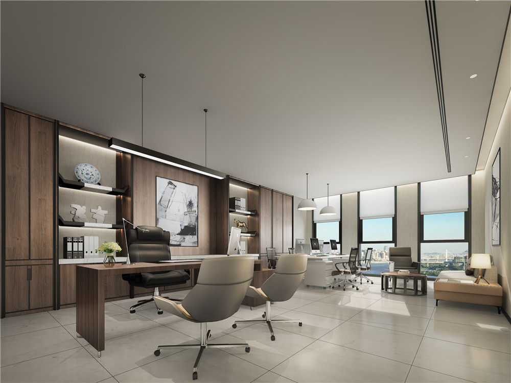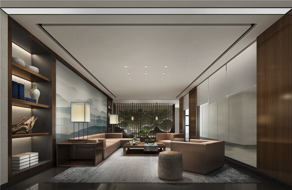 辦公室公共區(qū)域設計元素更多的是以現(xiàn)代科技為主;在辦公室休息區(qū)設計的時候,則為人營造出古代的自然氣息,讓人沉浸于自然的舒適美好;財務室里面通透明亮充滿現(xiàn)代感;總經(jīng)理和董事長辦公室裝修設計則以中國傳統(tǒng)為主題,在里面融入少量科技元素。