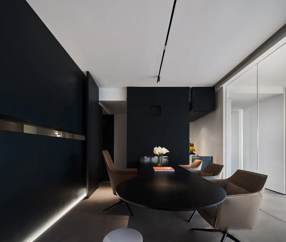 本案是一個(gè)多元功能的工作空間裝修設(shè)計(jì),開放、靈活的空間側(cè)重激發(fā)更多想象的可能,在200平方米的有限空間里敘述著無限可能的故事。每一處設(shè)計(jì)肌理都有屬于自己的語言,壁掛出的金屬紋路、落地窗前的一抹孤白,在潛移默化之中喚醒了空間的生命力。