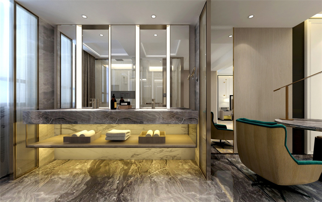 新城國際酒店裝修設(shè)計從駝人集團文化中提取出沙漠綠洲(希望)、駝人之光(引領(lǐng))、駝鈴精神(旋律)、一帶一路(前行)等元素,打造了一個具有國際化視野、新東方中式風采商務(wù)酒店?空間。酒店大堂接待區(qū)背景選取意化的山峰與駱駝,代表了駝人集團砥礪前行的開拓精神。在酒店軟裝設(shè)計中,富有地方特色的豫劇、汴繡、汝瓷等元素都成為空間中的點睛之筆。...