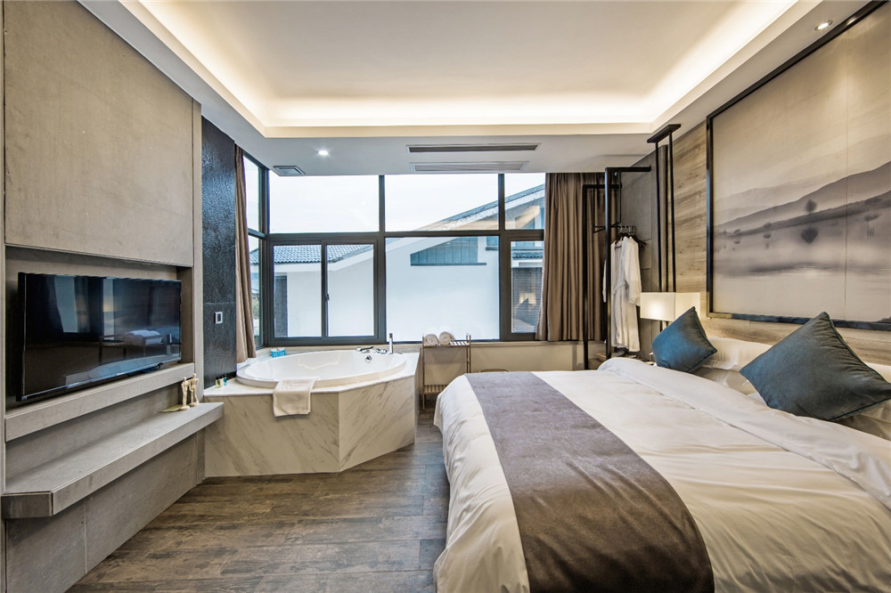九曲酒店位于風(fēng)景區(qū)內(nèi),自然景觀獨(dú)好,而民宿裝修設(shè)計(jì)自然是一個(gè)極致而恒久的話題。設(shè)計(jì)師崇尚古典與現(xiàn)代的融合,傳統(tǒng)與時(shí)尚的并存,以山竹與溪水為靈感,力求打造一個(gè)“混搭”的現(xiàn)代空間。