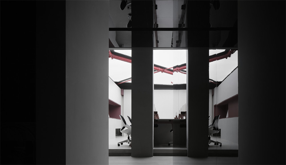 項目是一個傳媒公司辦公室,形體的本身不能用有沒有意義來定義就像一個文字一樣文字是可度量表達是不可度量方案內(nèi)所有形體都是擁有實際使用功能的只不過這些面材、形體都有它們想成為的樣子我?guī)退鼈儯娌?、墻體、消防管道等)呈現(xiàn)它們想要呈現(xiàn)的樣子。再建結(jié)構(gòu)時更多考量了不同區(qū)域空間之間的互通與交集,燈光軟膜與立面墻體之間的用玻璃作為分割,既不破壞墻面的完整性,又能使燈光穿透過來。