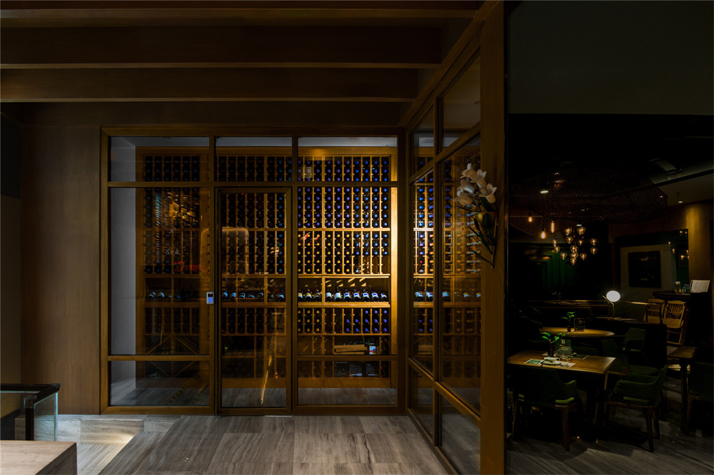 本案打造的是一個創(chuàng)意川菜與葡萄酒結合的音樂酒吧餐廳。整體餐廳裝修設計給人一種置身于花園之中的寧靜感,大片的生態(tài)綠值,像叢林也像葡萄藤蔓。在忙碌緊張的工作之余,走進餐廳能感覺“慢”下來,享受美食享受生活。