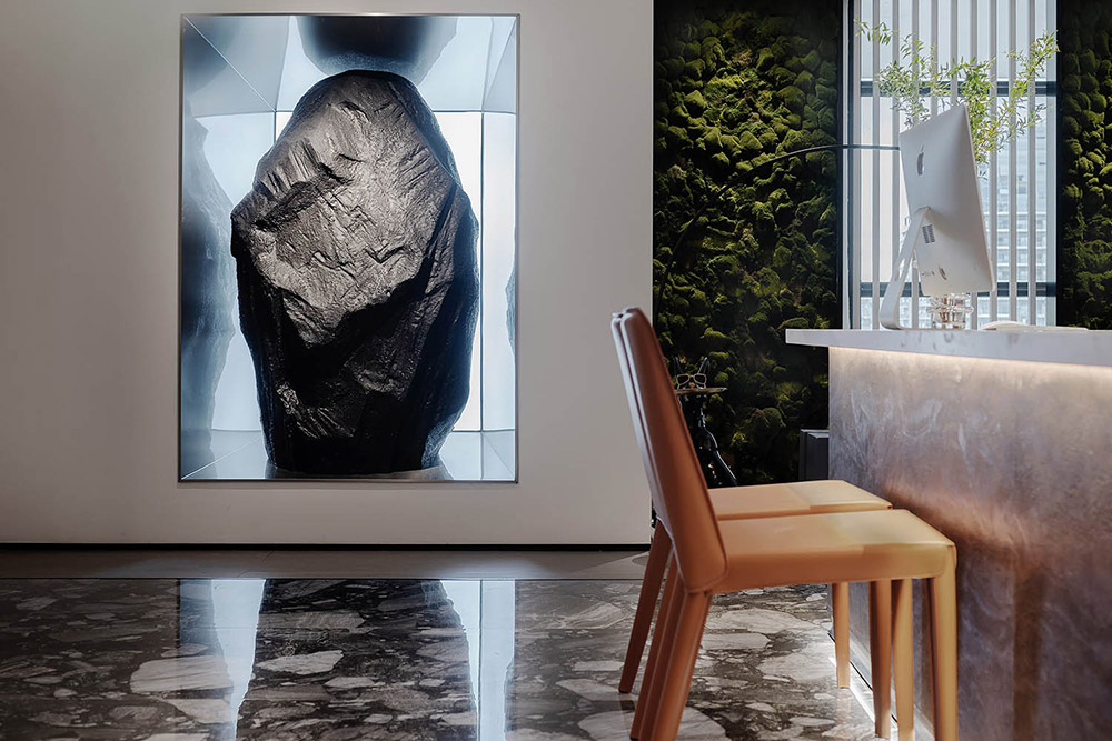 因?yàn)檫@是關(guān)于巨石設(shè)計(jì)集團(tuán),我可以坦率地告訴大家,我們的空間確實(shí)采用了一塊形狀奇特的大石頭,它看起來像天空中的一個(gè)奇怪的物體,黑暗而神秘,通過空間反射出一種無限的夢(mèng)想和想象。不銹鋼鏡面折射。你有沒有覺得很像某個(gè)神奇的場(chǎng)景?沒錯(cuò),它就像一塊偉大的賢者之石。