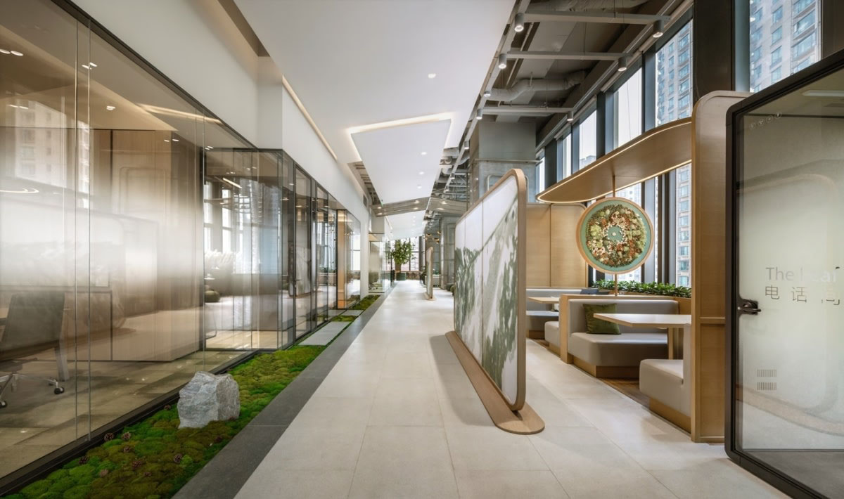 鄭州辦公室設(shè)計(jì)公司,金博大裝飾。上海瑞安房地產(chǎn)設(shè)計(jì),一個(gè)受自然啟發(fā)的共享社區(qū)工作空間。