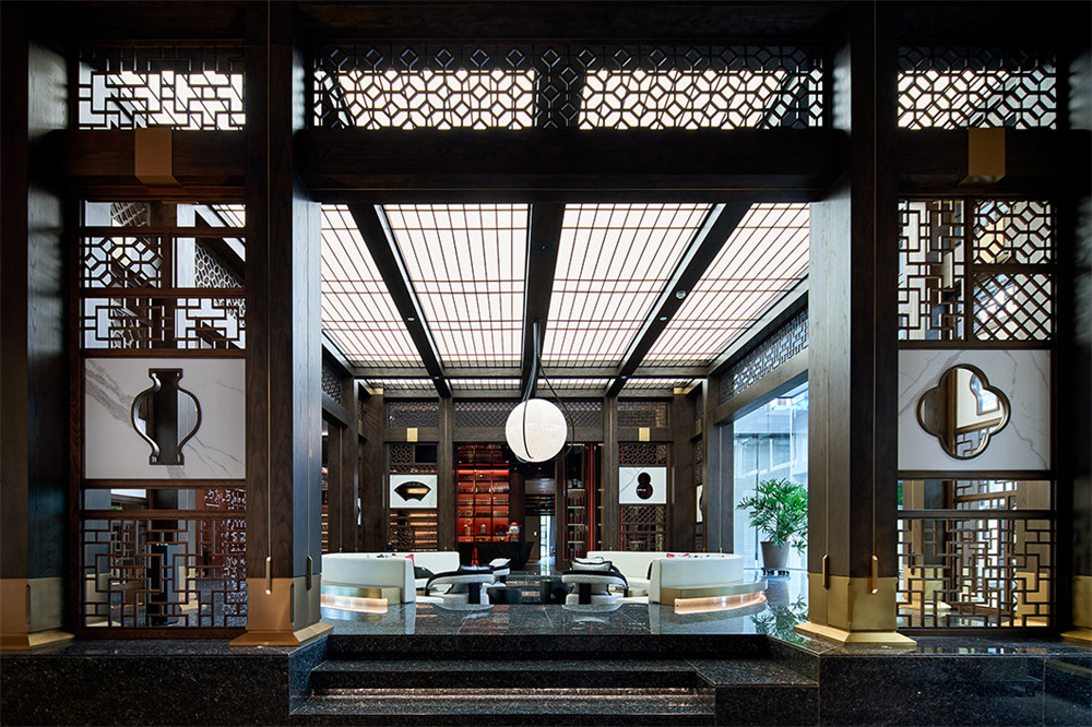 簡奢而自然,給客人帶來全新的美食體驗。時空賦予的印記和歷史文化價值,讓她有著與眾不同的坦然氣質(zhì)。園林建筑里鋪開先鋒設計的張力,與山水詩畫同頻共情....大廳設計方中帶圓,輔以建筑的鏤空設計,以精工手法傳遞著細膩的工匠藝術(shù)精神。