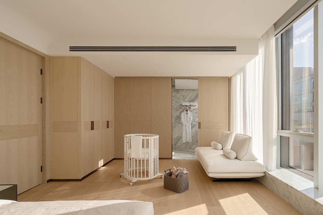 本案針對(duì)高端人群,以酒店會(huì)所式服務(wù)打造空間。玥府月子中心裝修設(shè)計(jì)不局限于某種風(fēng)格,以弧線的包容、大地色系的放松描繪空間場(chǎng)景,奶油色系的家具為空間舒適、藝術(shù)氣息。從五感出發(fā),讓人與空間、人與自然、人與人之間的關(guān)系和諧發(fā)展,互相滋養(yǎng)。