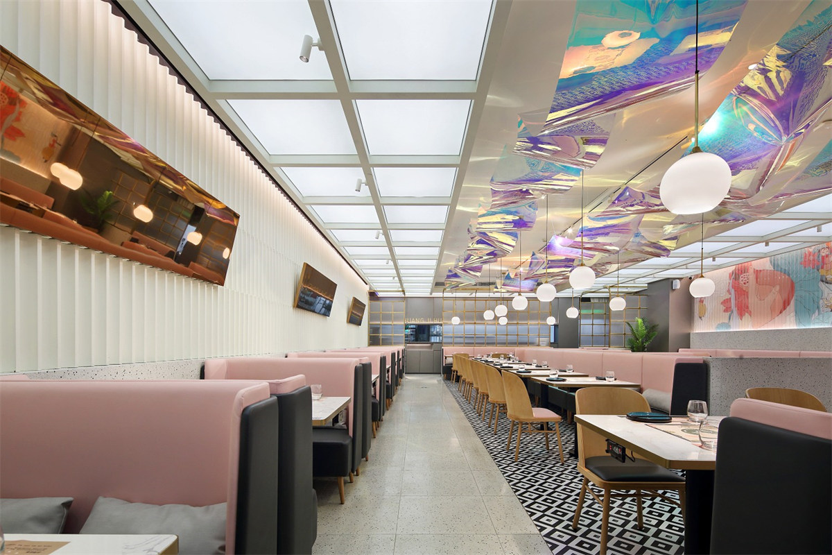 整體餐飲空間設(shè)計(jì)給人年輕、清新、時(shí)尚之感。清新的空間,新潮而時(shí)尚;豐富多變的燈光,折射出現(xiàn)代夢(mèng)幻氛圍;美味可口的食物,滿足美食家們的味蕾。