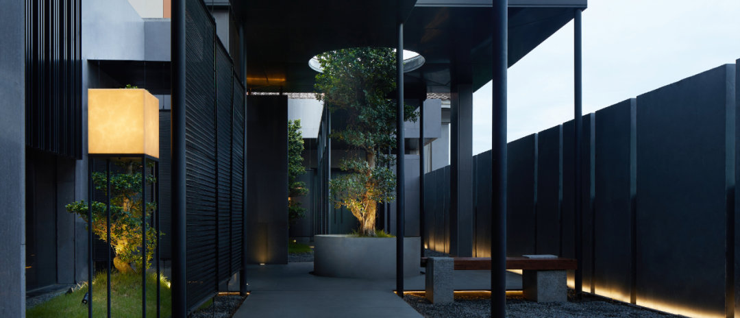這里沒有太湖石,沒有假山也沒有瀑布。而屏風(fēng),建筑隔斷,矮墻,水景就成為了庭院意境營造的元素,這種層層疊疊,錯落有致的形態(tài)就是都市山水的意向轉(zhuǎn)化。園林到底應(yīng)該是寫實還是寫意已經(jīng)不重要,重要的是空間氛圍。